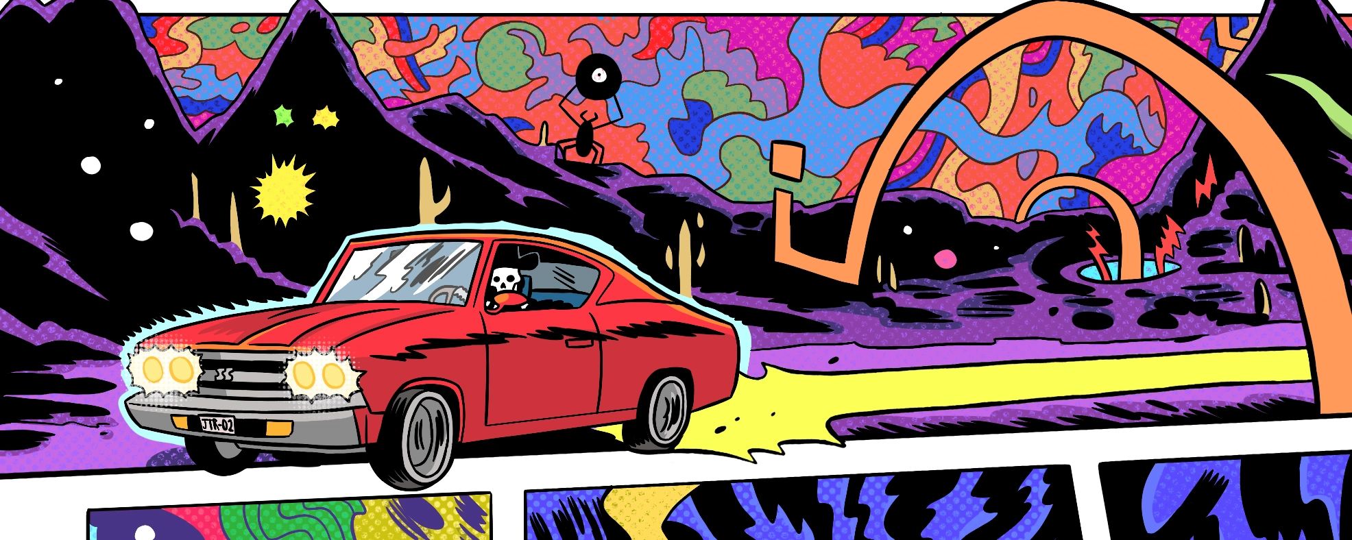 Published by A Wave Blue World, available now at comic book shops and online directly from Jack The Radio's website. This anthology is country-fried, a dreamlike journey through lyrics from the band's new album from some of the best comic artists from around the world. There is also some Radical Realm Comics representing with a two-page short story drawn by Nick Cagnetti inside, check it out!